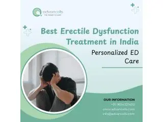 The Best Erectile Dysfunction Treatment in India focuses on identifying the underlying cause and providing a tailored medical approach. Options may include medications, testosterone therapy, vascular treatments, psychological counseling, or advanced clinical procedures. Early consultation and comprehensive evaluation are essential for achieving effective and sustainable results while improving overall sexual wellness and relationship confidence. For elaborative information Contact us: +91-9654321400 Visit us: https://www.advancells.com/ mail: info@advancells.com