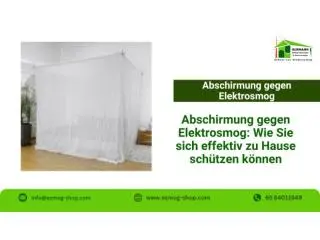 Abschirmung gegen Elektrosmog sorgt für ein gesünderes Zuhause und schützt zuverlässig vor WLAN-, Mobilfunk- und Funkbelastungen. Entdecken Sie geprüfte Lösungen für Wohn- und Schlafräume. Jetzt beraten lassen unter +49(0)62429136149.