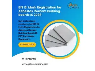 Agile Regulatory offers trusted BIS services for obtaining BIS ISI Mark Registration for Asbestos Cement Building Boards IS 2098. From application to final BIS approval, our team ensures a smooth certification process.